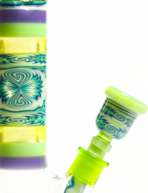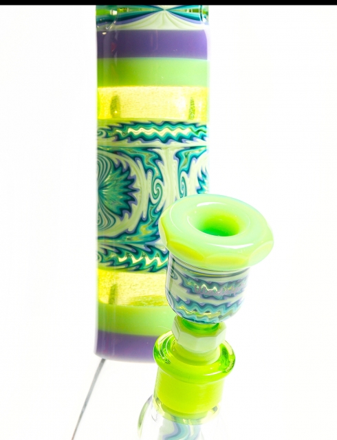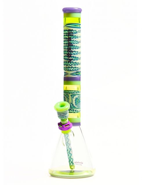 18'' Fully Worked Kiwi Green w Purple & Illuminati Fillacello Beaker