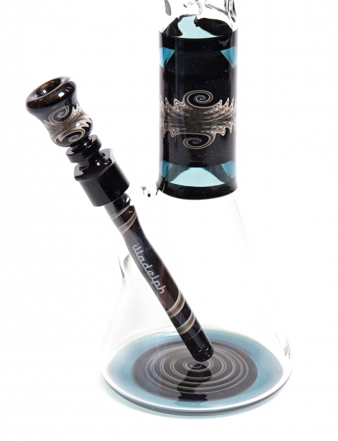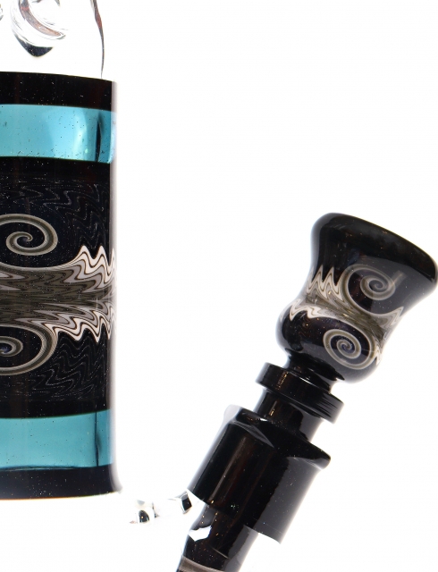 Black, Teal, & Grey Worked Beaker w/ Faceted Bead & Joint