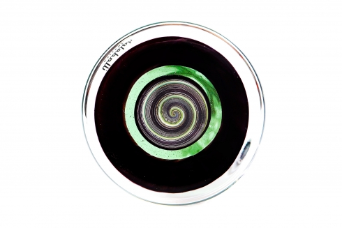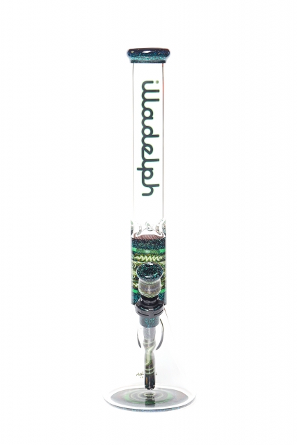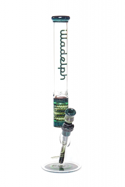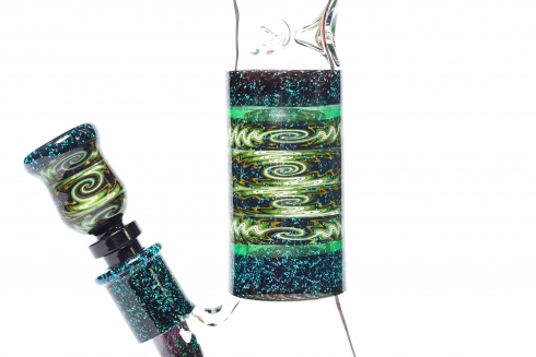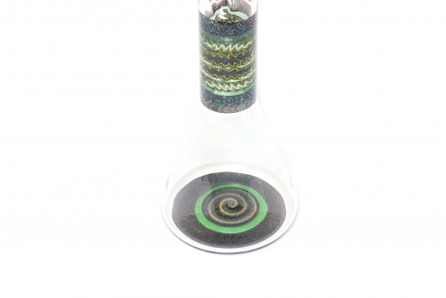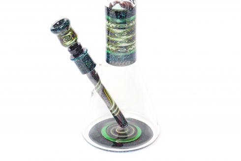 Green & Black Sleeved Crushed Opal Wig Wag Worked Beaker