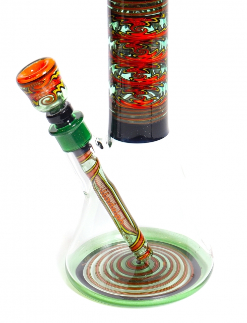 Green Stardust & Orange Worked Beaker