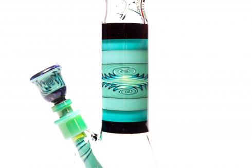 Mint, Aqua, & Black w/ Fillacello Worked Beaker