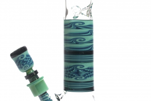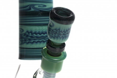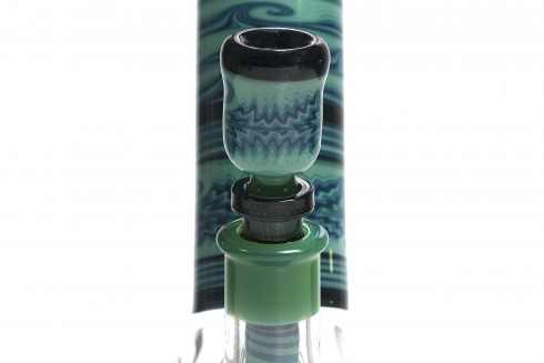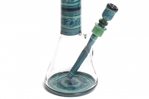 Mint Green w/ Green Lep Stringers 5 Stacked Worked Beaker