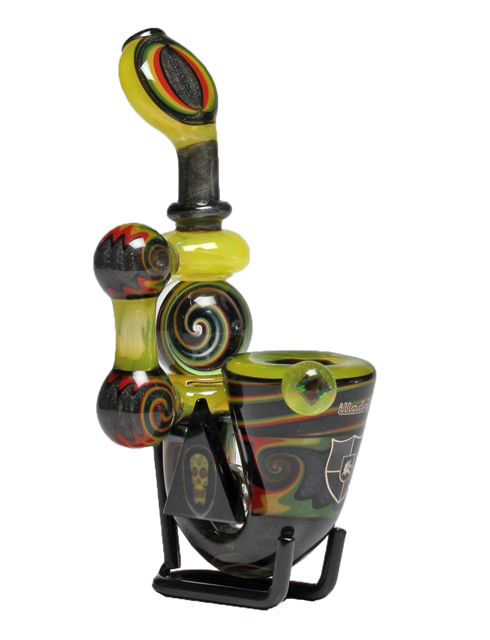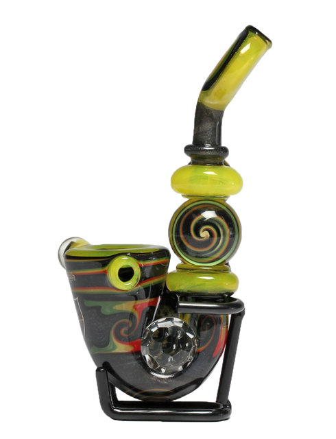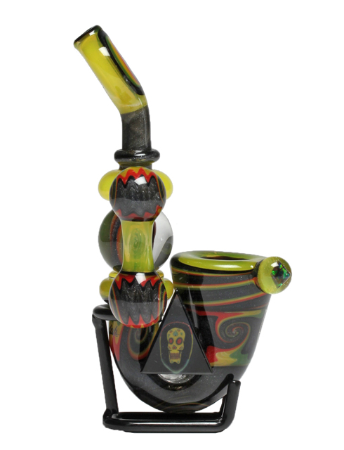 Rasta Spinning Marble Sherlock with facet and skull milli.