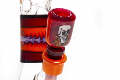 Worked Orange Flower Skull Beaker